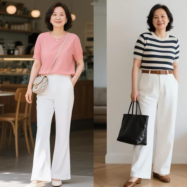 比起小黑裤,白色阔腿裤更能修饰腿型。它的裤腿从大腿到裤脚宽度一致,能遮住O型腿、肌肉腿,还能拉长腿部线条。选择高腰款式,搭配腰带强调腰线,再露出脚踝,能显高显瘦。面料选垂坠感强的西装料,不易皱、有质感,无论是搭配衬衫还是t恤,都很时髦显年轻。