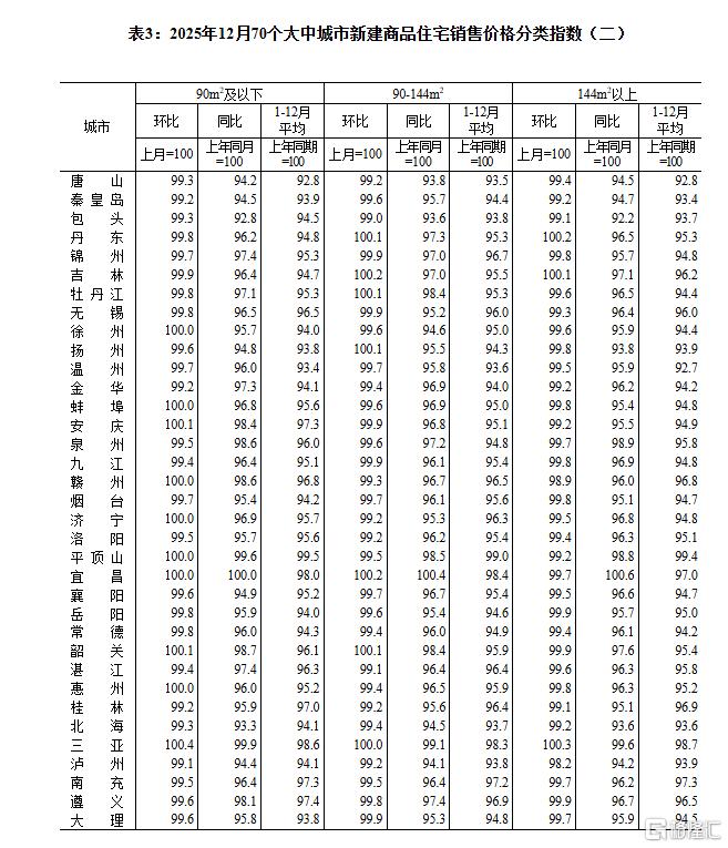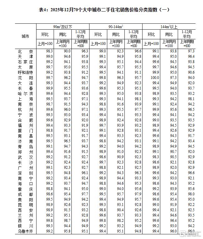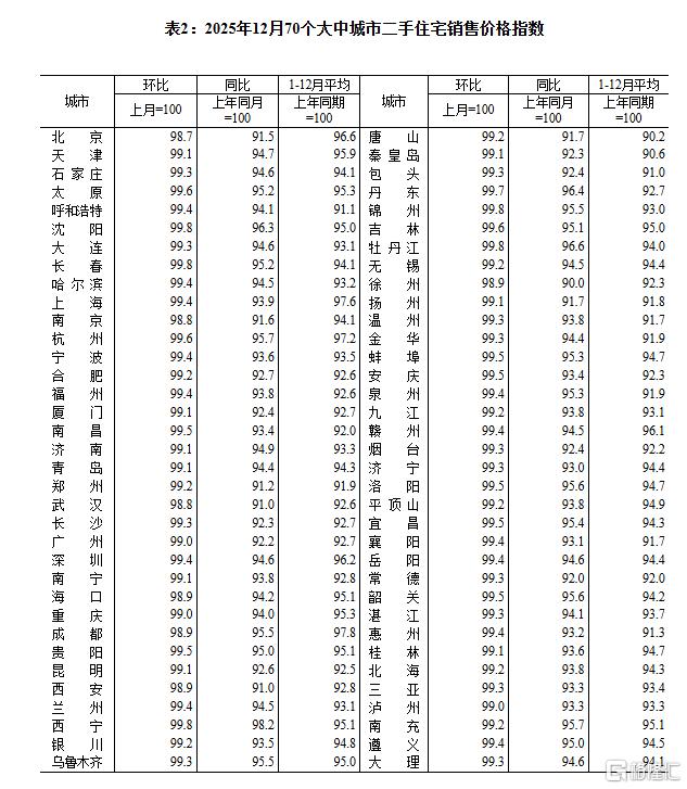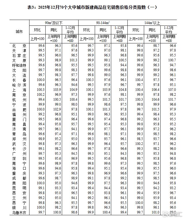 1月19日,国家统计局公布2025年12月份70个大中城市商品住宅销售价格变动情况。